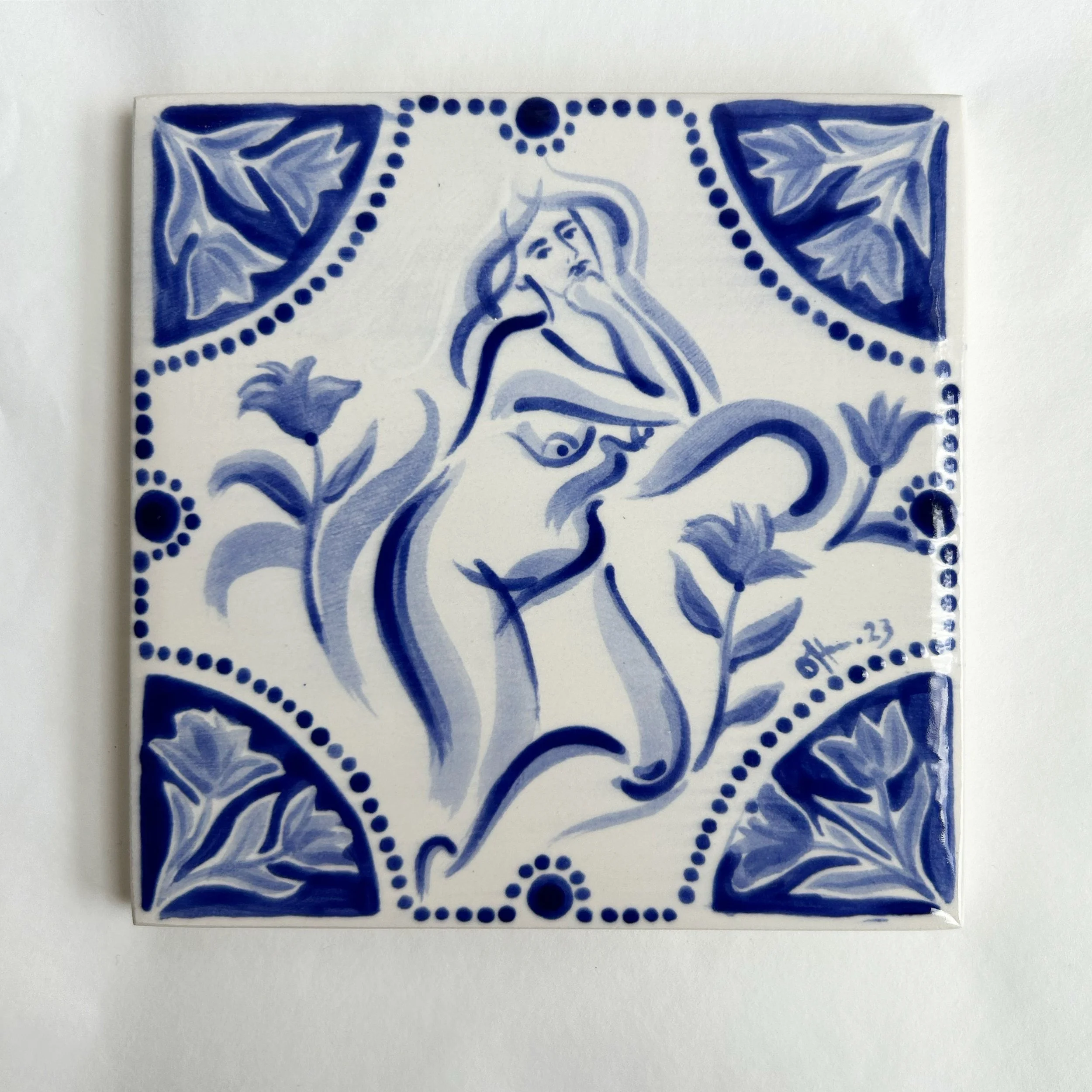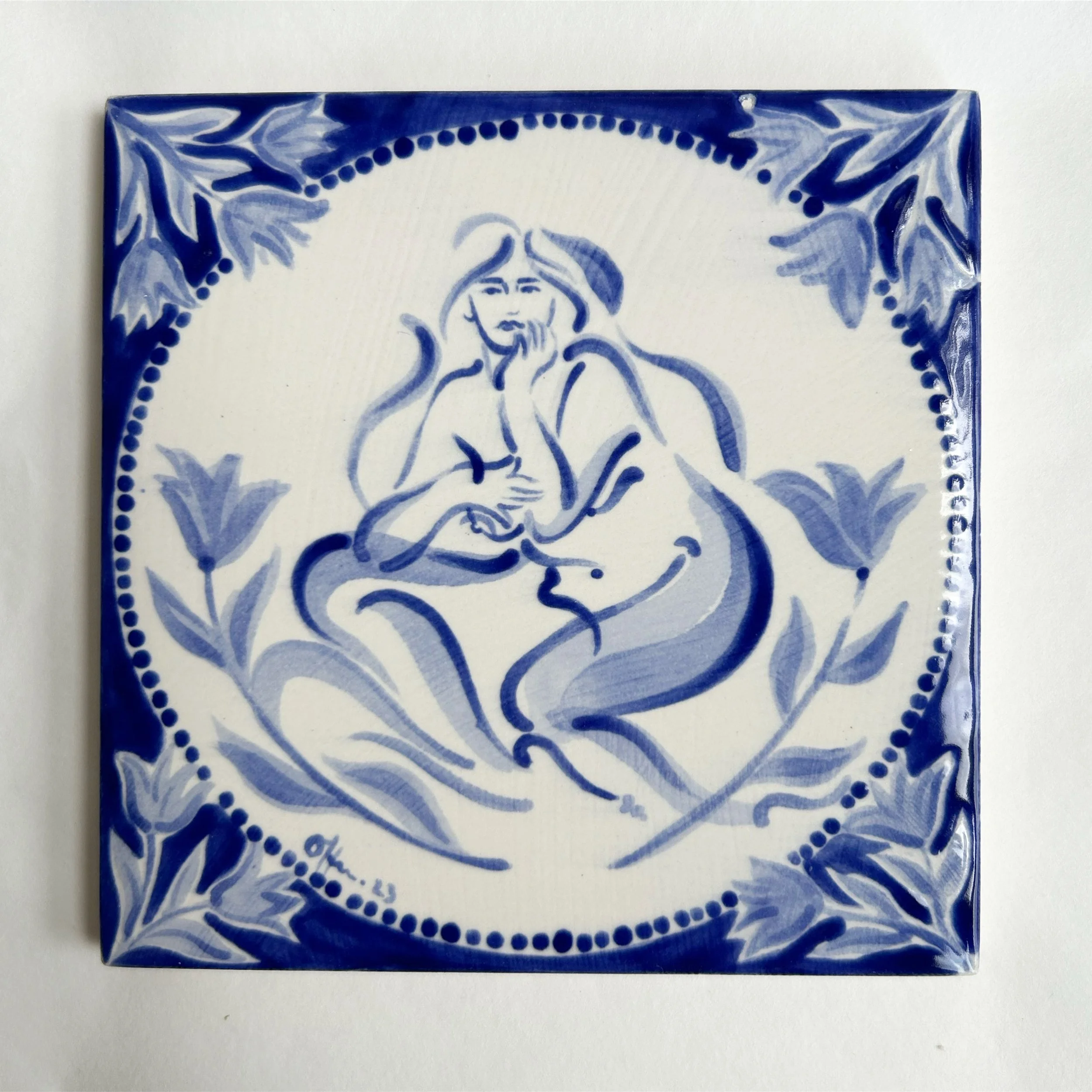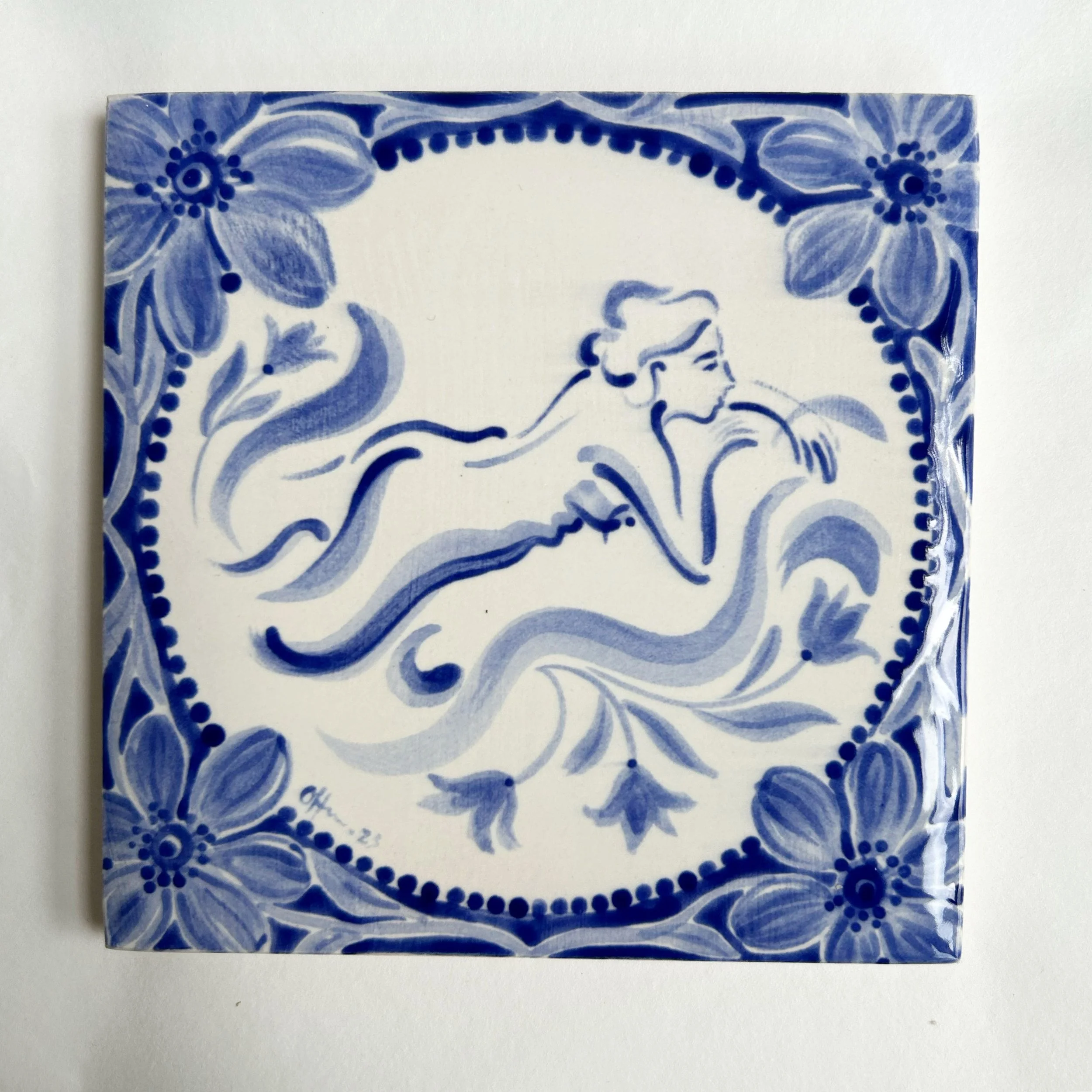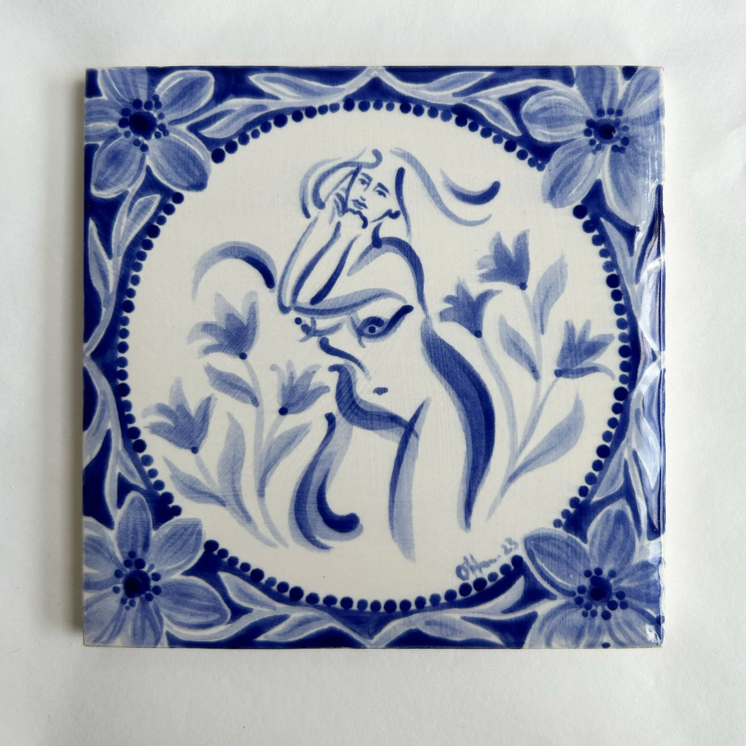 Penelope, 20 x 20cm, hand painted and glazed ceramic plate - £185