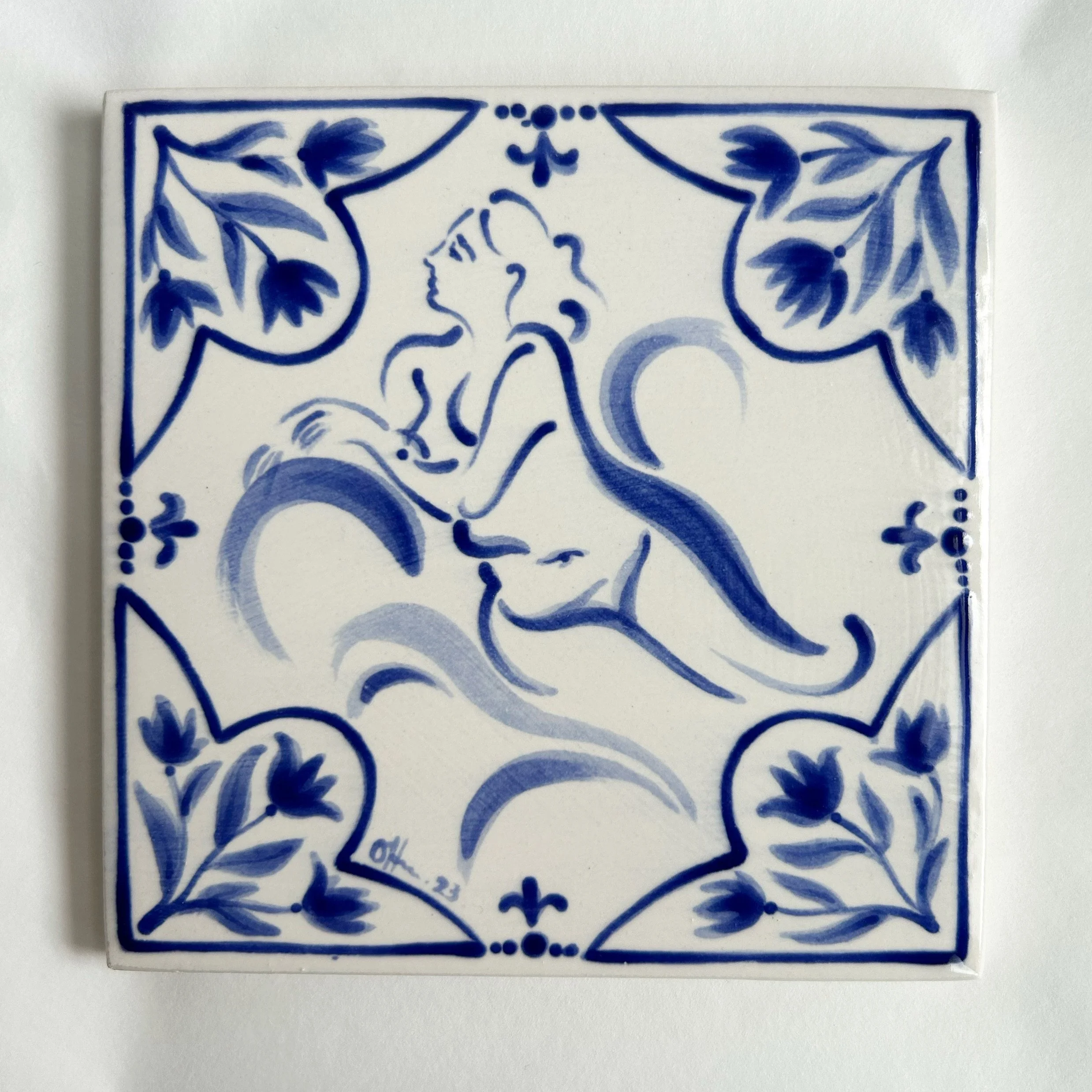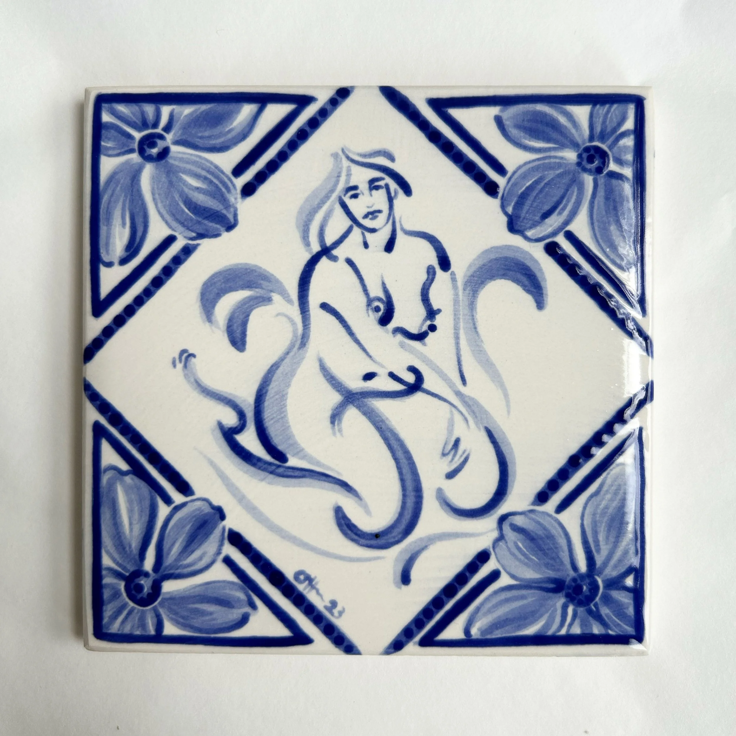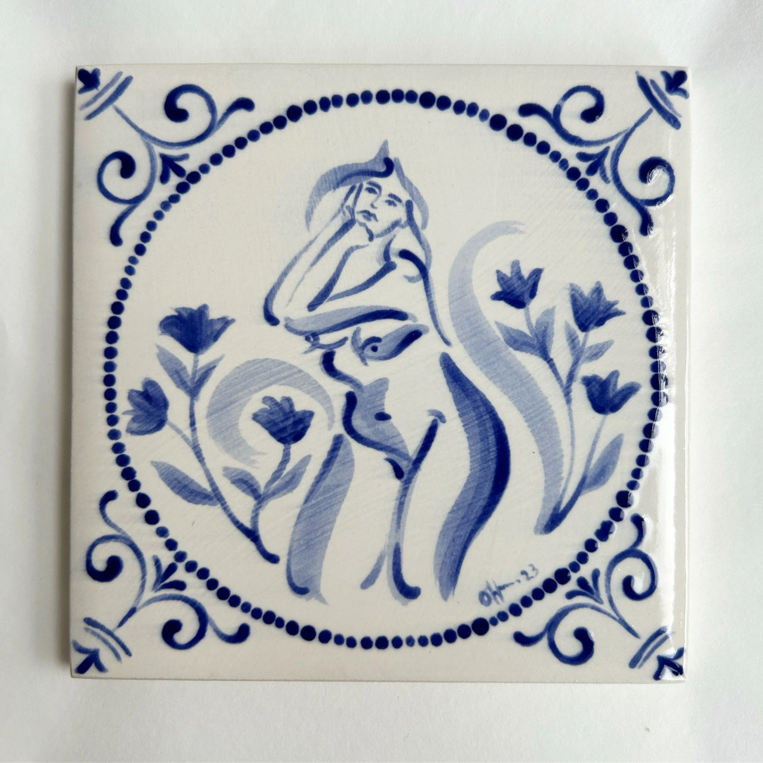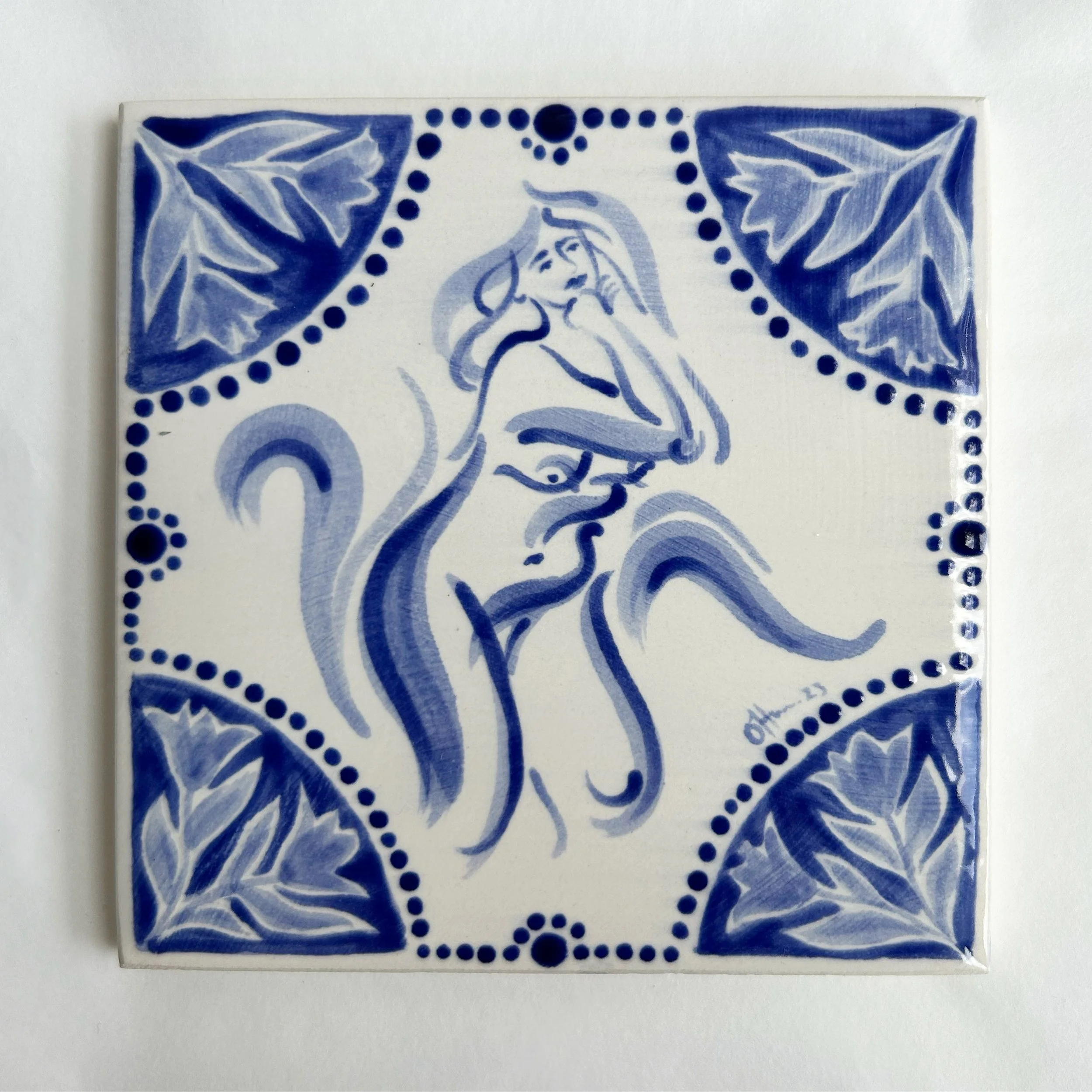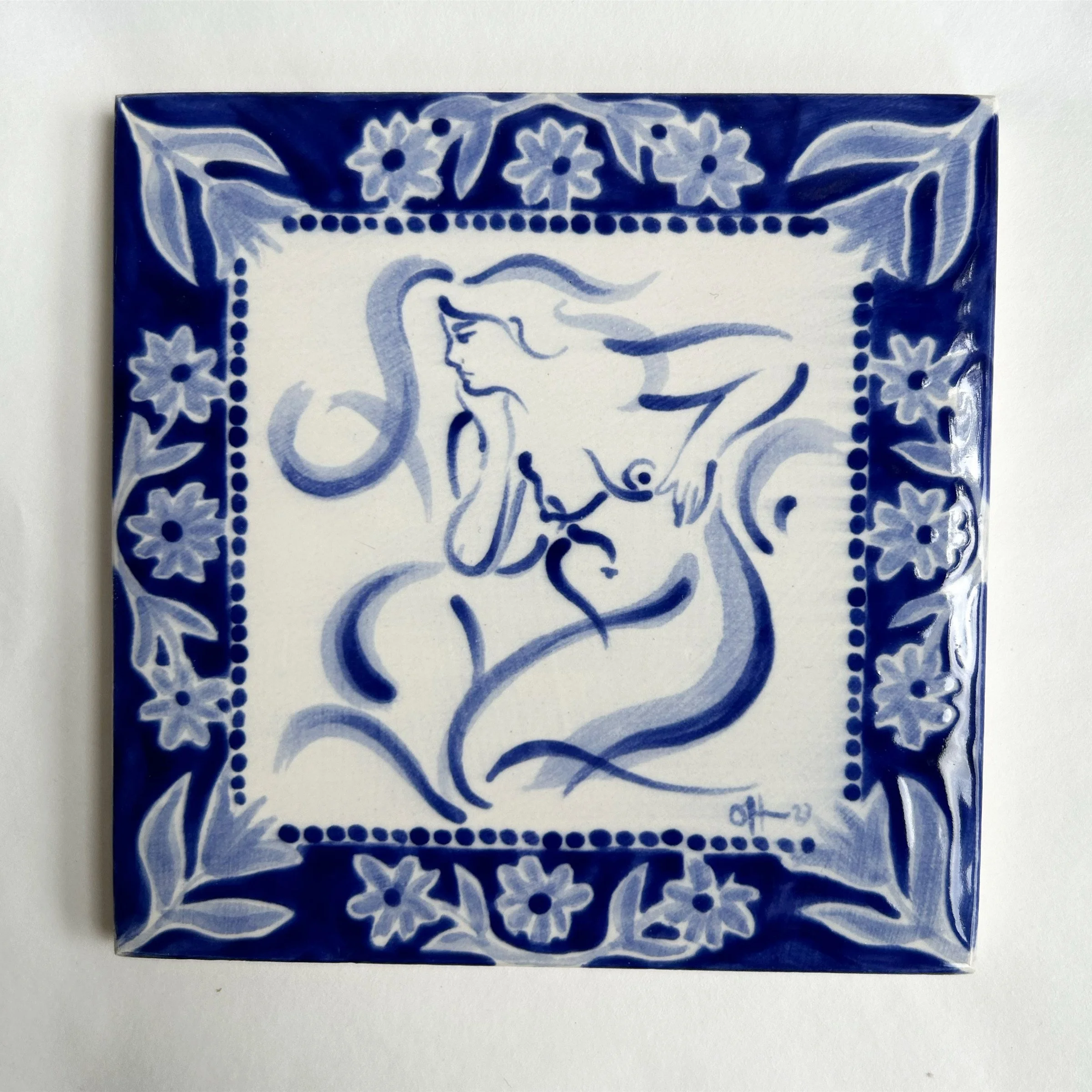 Penelope, 20 x 20cm, hand painted and glazed ceramic plate - £185