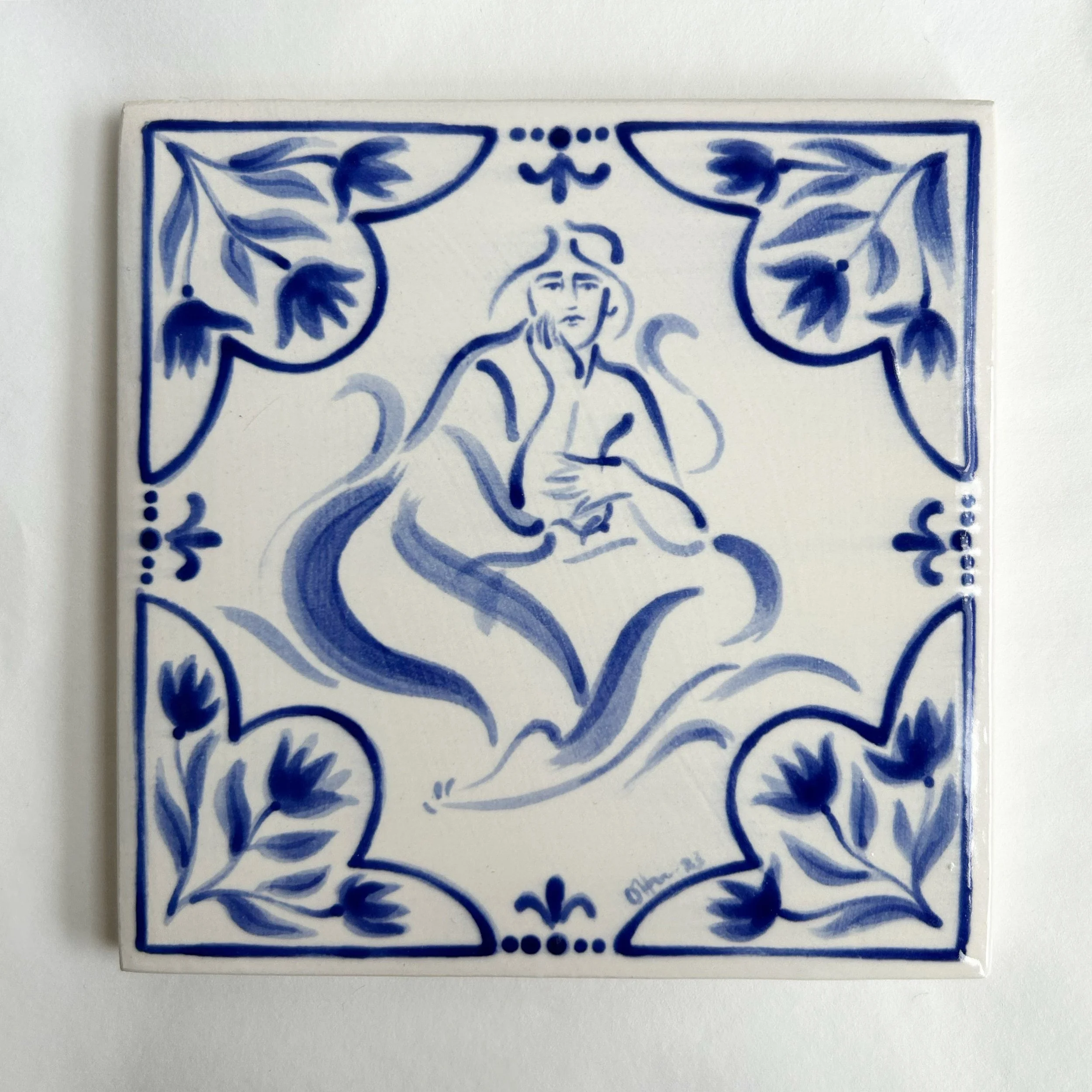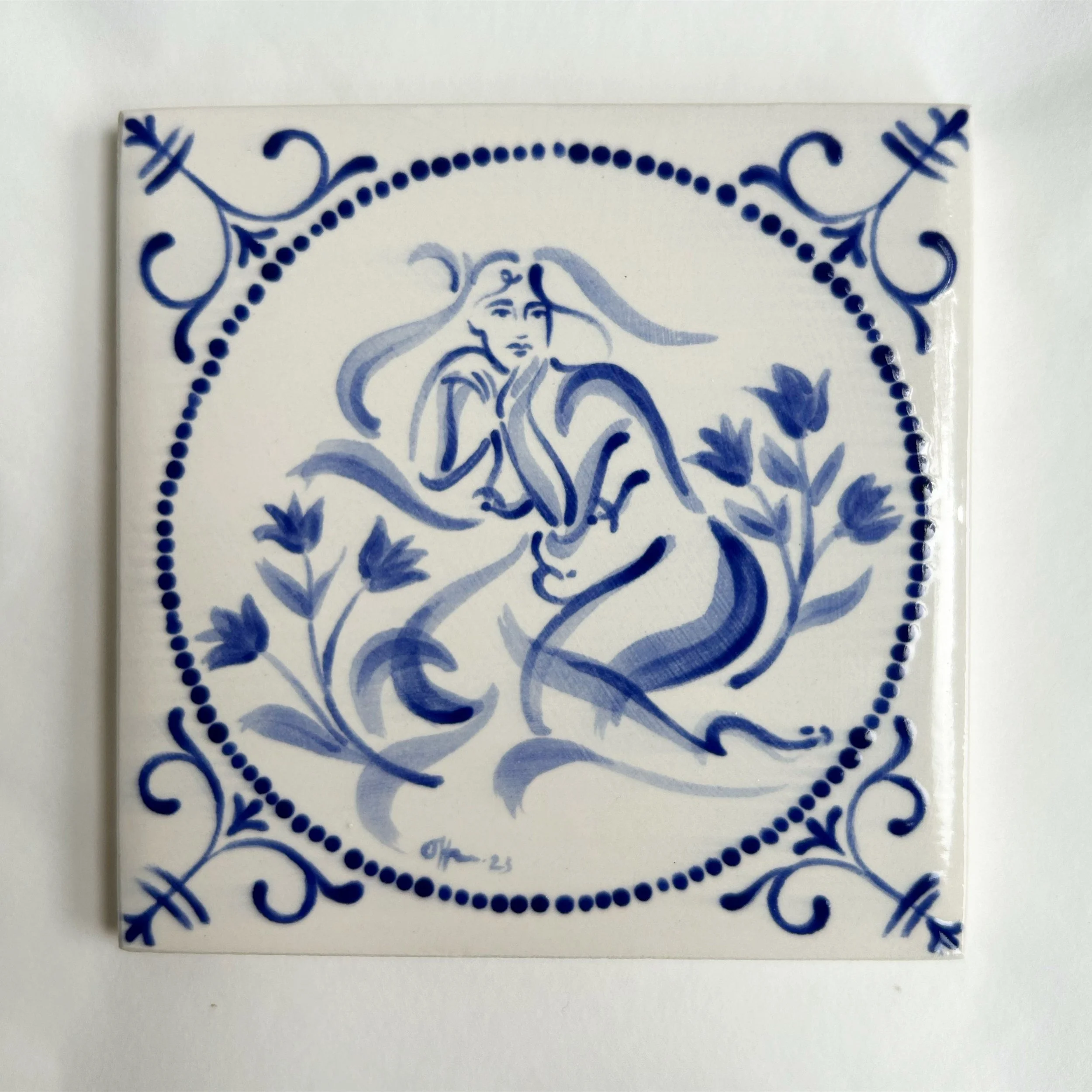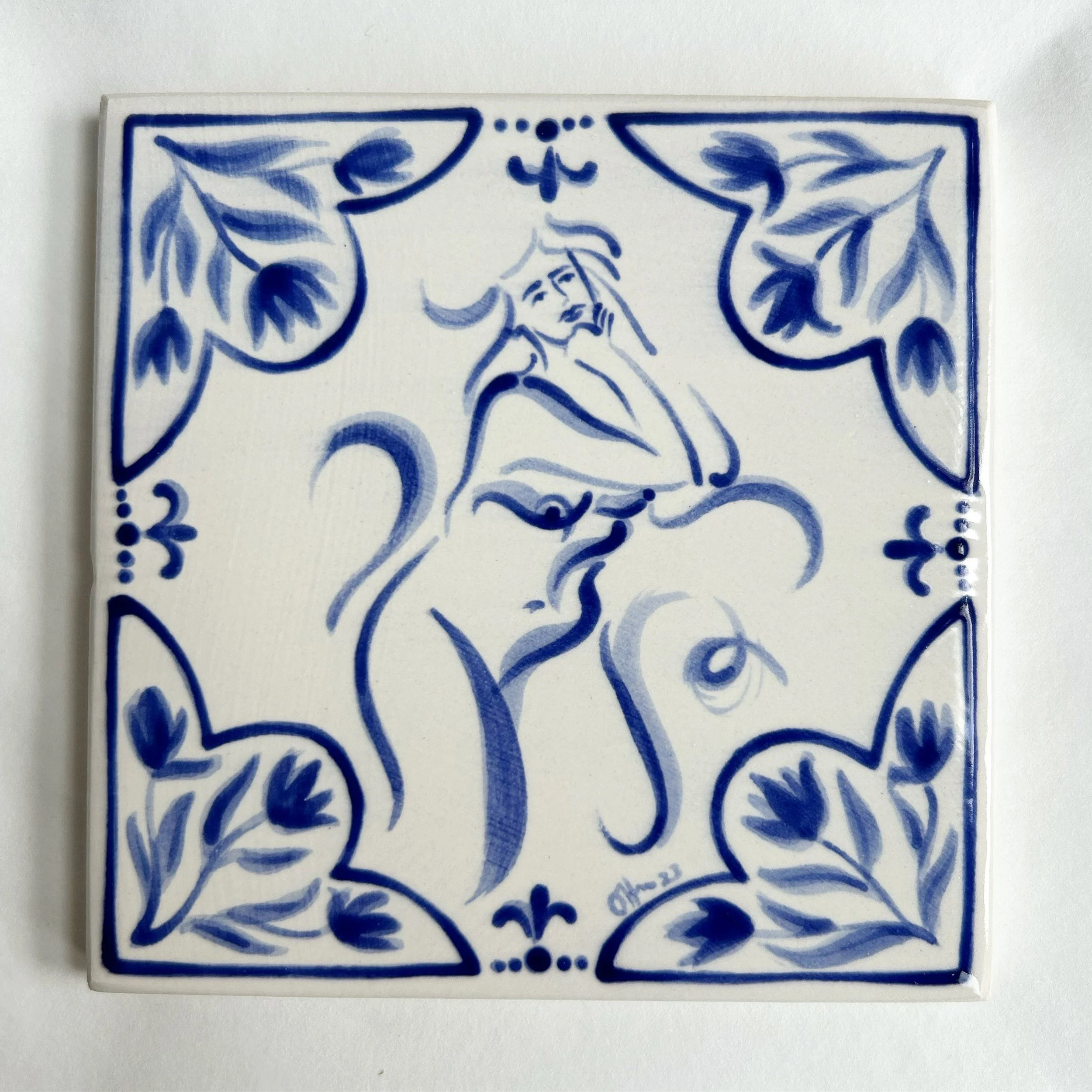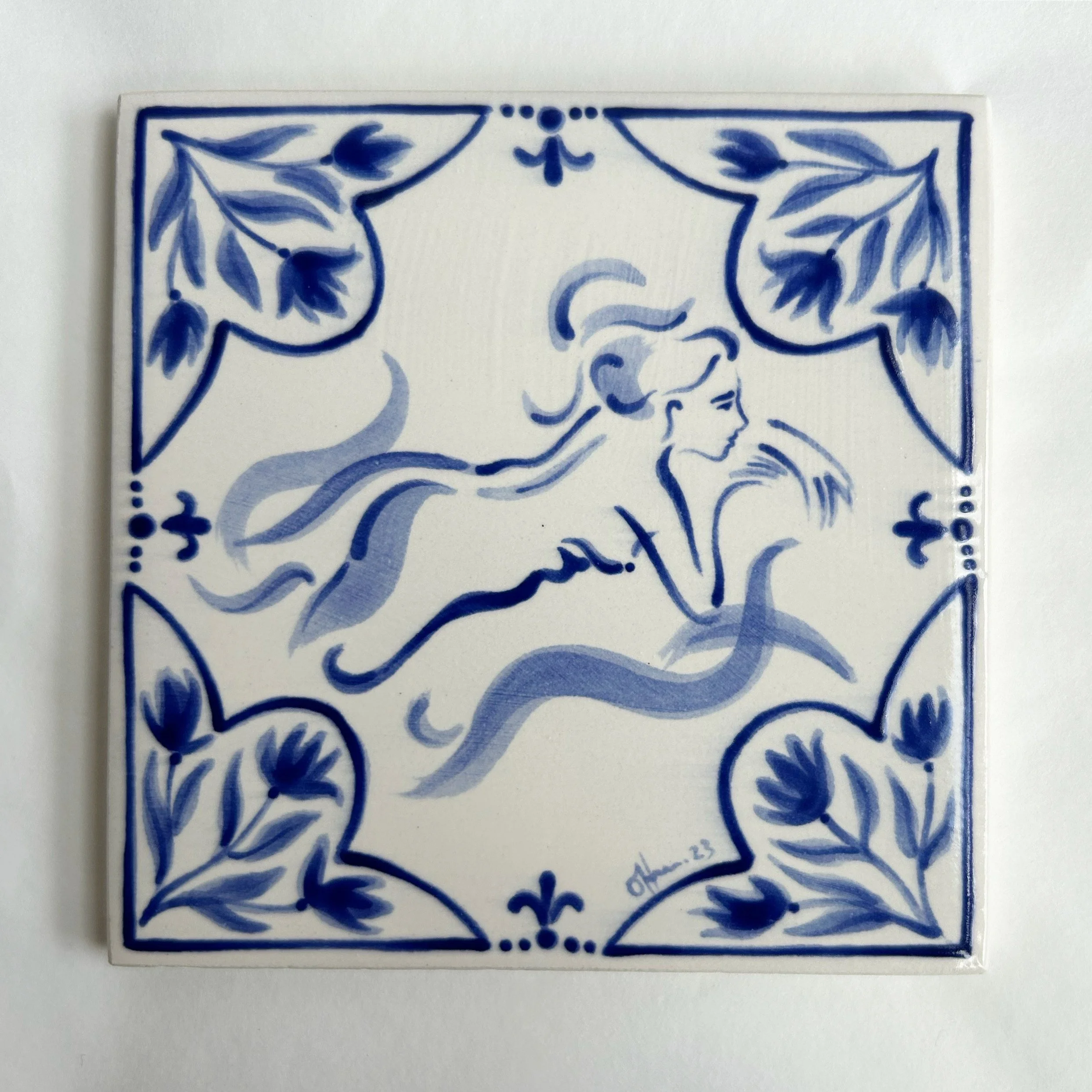 Penelope, 20 x 20cm, hand painted and glazed ceramic plate - £185